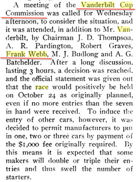 - Identify Frank Webb. Link him to the Vanderbilt Cup Races.