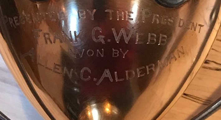 This trophy was the Membership Cup, awarded to the member of the Long Island Automobile Club who recruited the most new members during the year. It was sponsored by Louis T. Weiss, who had won a similar award in the past. Frank G. Webb was president of the club at the time. Allen C. Alderman, a wealthy attorney, who was also a past president of the club, had recruited the most new members.