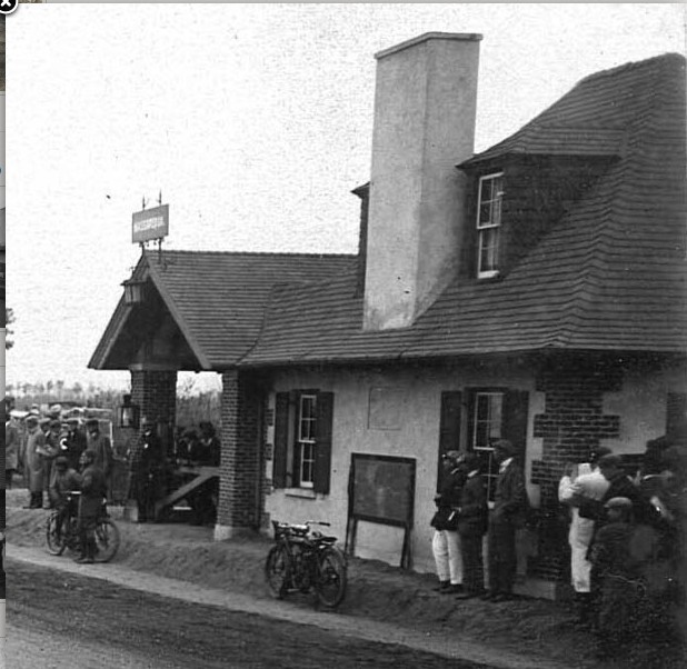 The Massapequa Lodge (1908-1938) looking towards the north) with the Motor Parkway to the left (or south side of the lodge) in the photo.