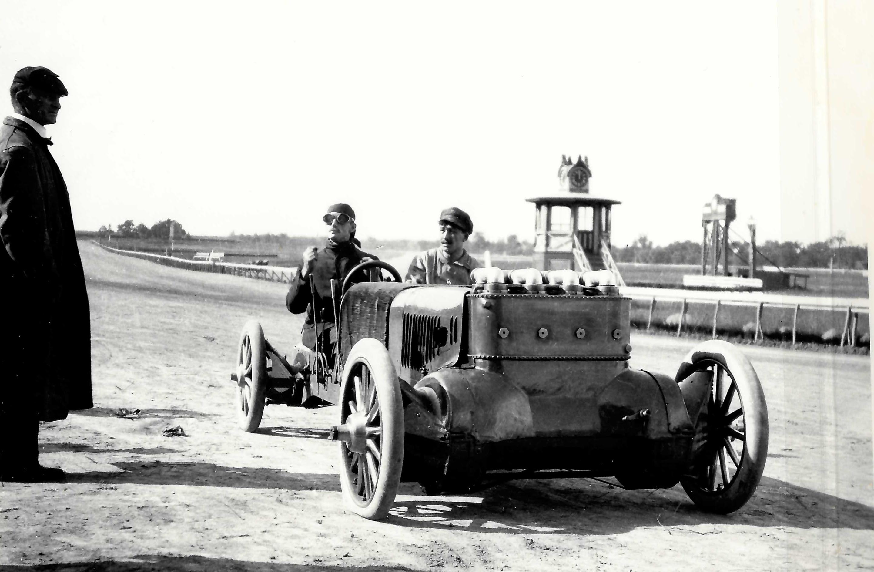 Driver and Auto Builder J. Walter Christie’s Front Wheel Drive Christie Racer 1905-1906. Lewis Strang Riding Mechanic and Race Car Driver. Keeping American Automotive Racing History Alive!