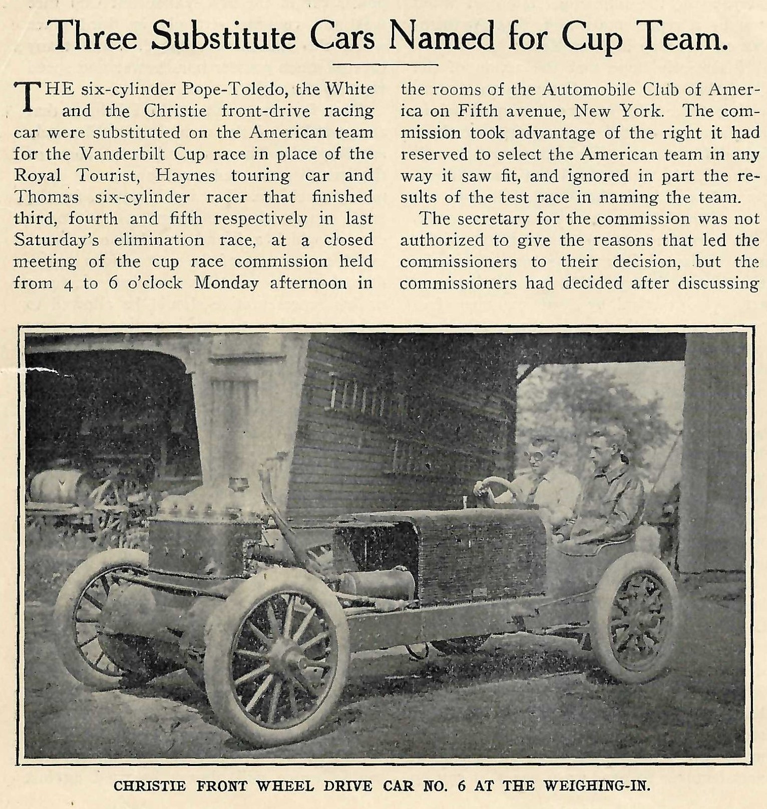 And as I said above Christie drove the race car in the 1905 Vanderbilt Cup.
