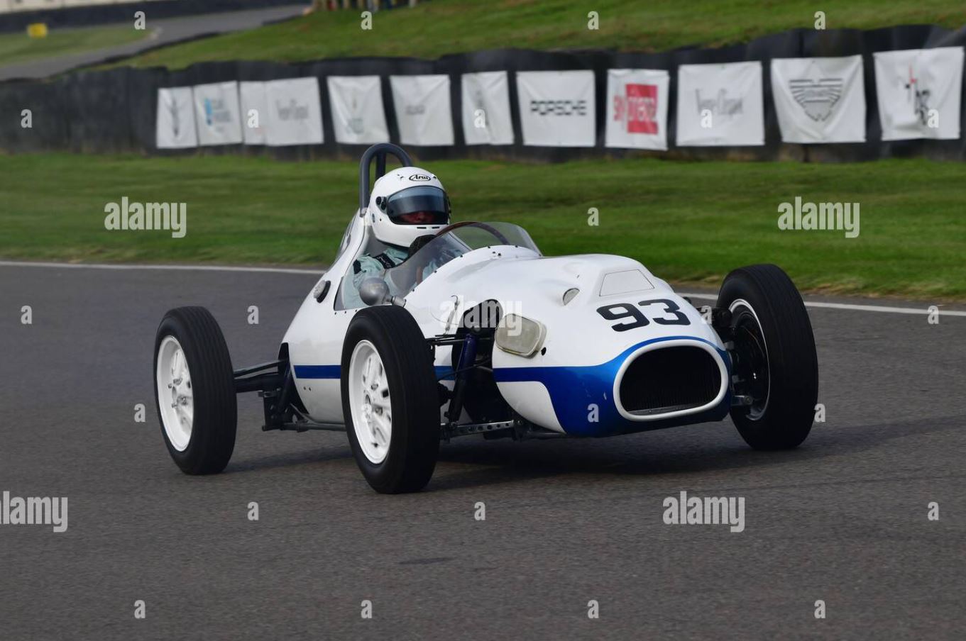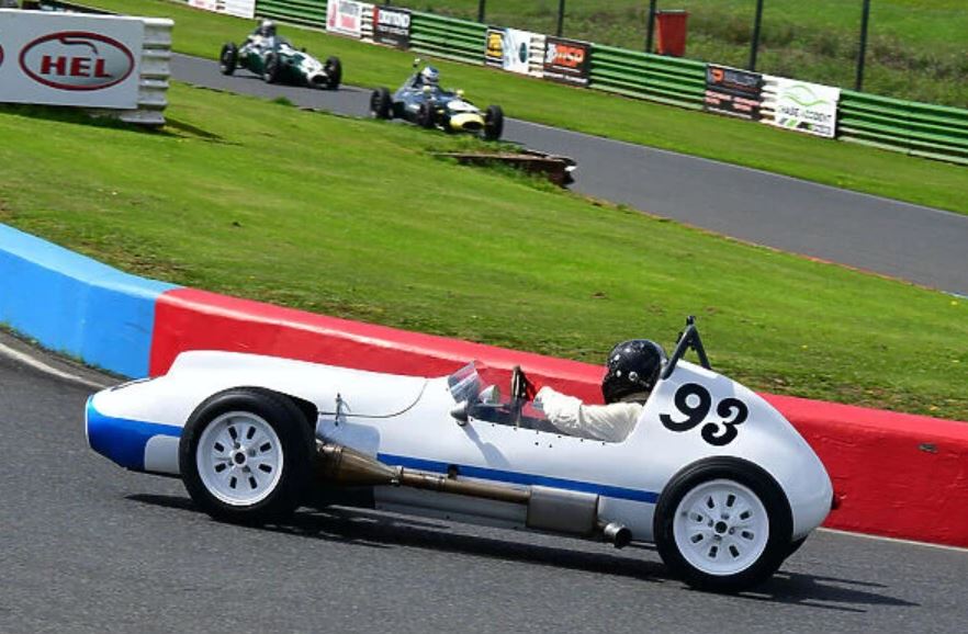 - The vintage race car on the right