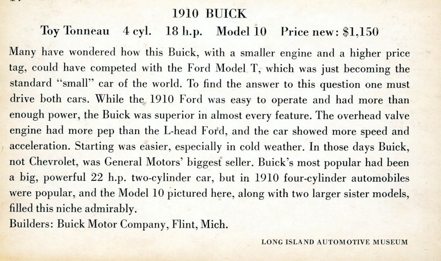 1910 Buick, Toy Tonneau, 4 cylinders, 18 HP, Model 10,