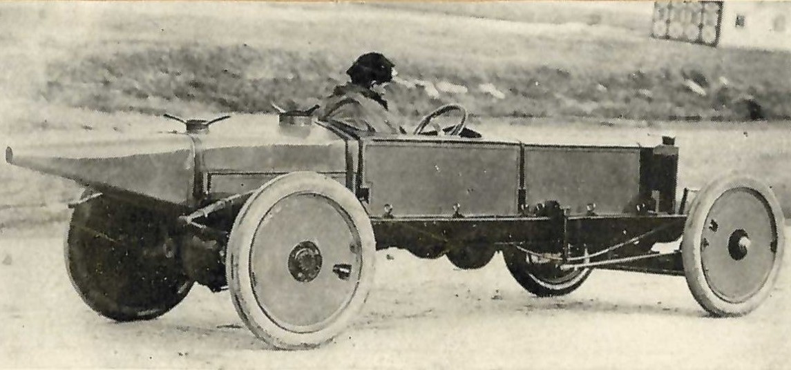 Turned out to be a real head-scratcher so just some guesses. Looks like an early Peugeot racer of some kind. If it is Peugeot, then maybe it’s Dario Resta driving. Resta won the 1915 and 1916 Vanderbilt Cup races. As to the location of the car today: maybe Jay Leno’s garage?