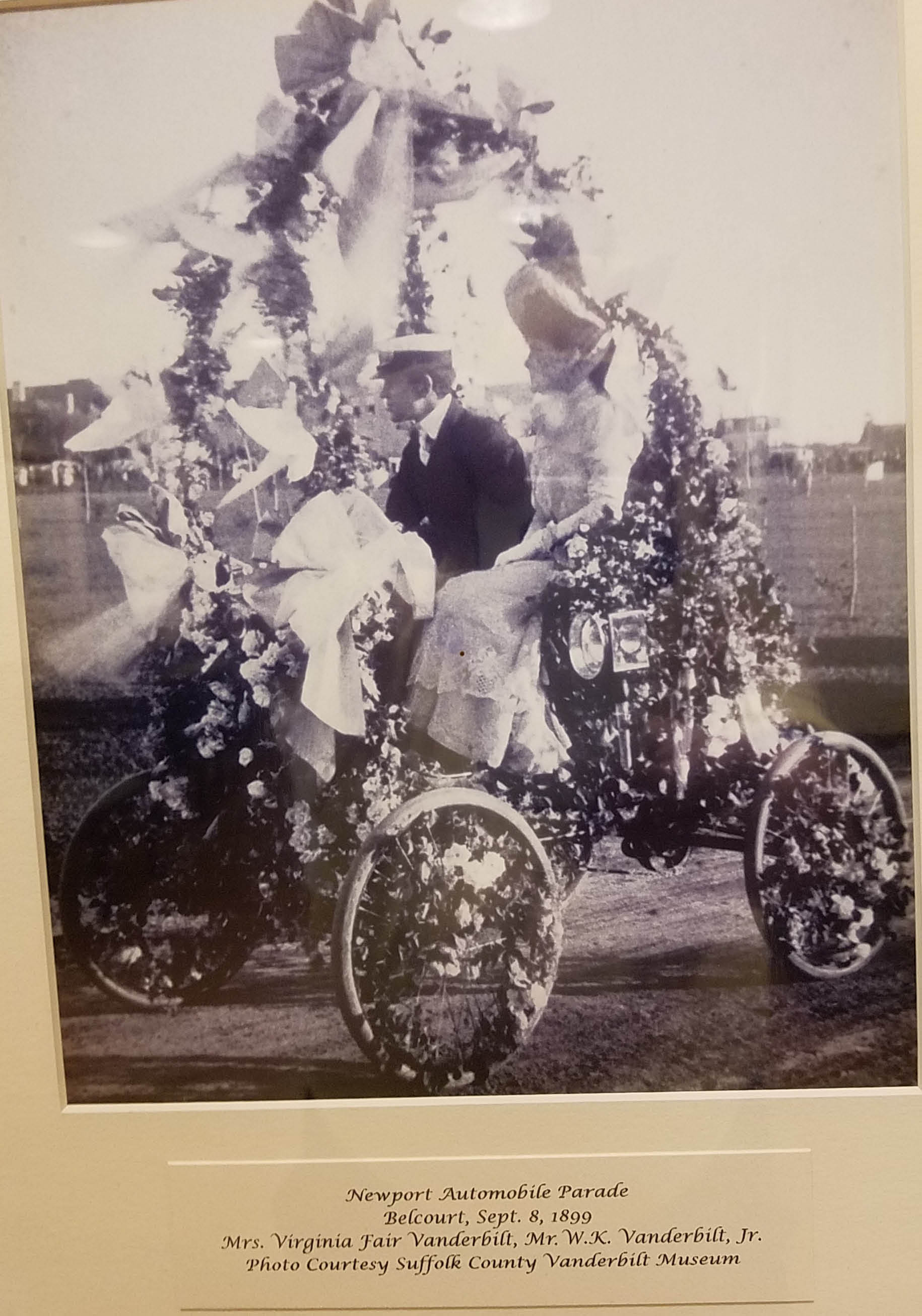 .Willie K and Birdie Vanderbilt at the 1899 Newport Parade in a Locomobile. This photo is hanging in Alva Vanderbilt Belmont's Marble House in Newport, Rhode Island, courtesy of the Suffolk County Vanderbilt Museum.