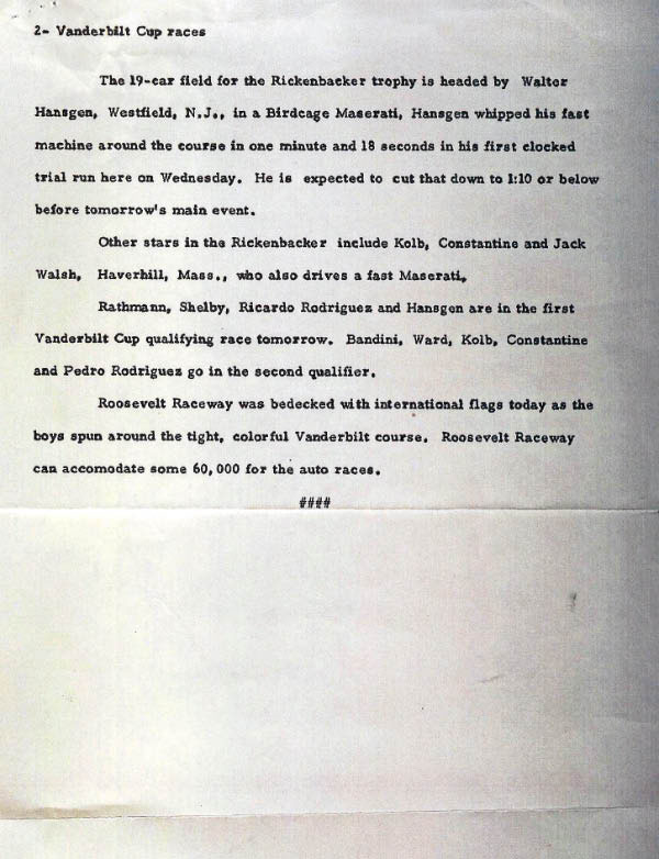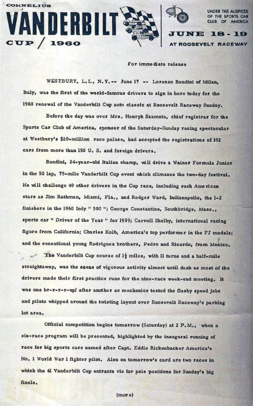 Cornelius Vanderbilt Cup/1960 Press Packet