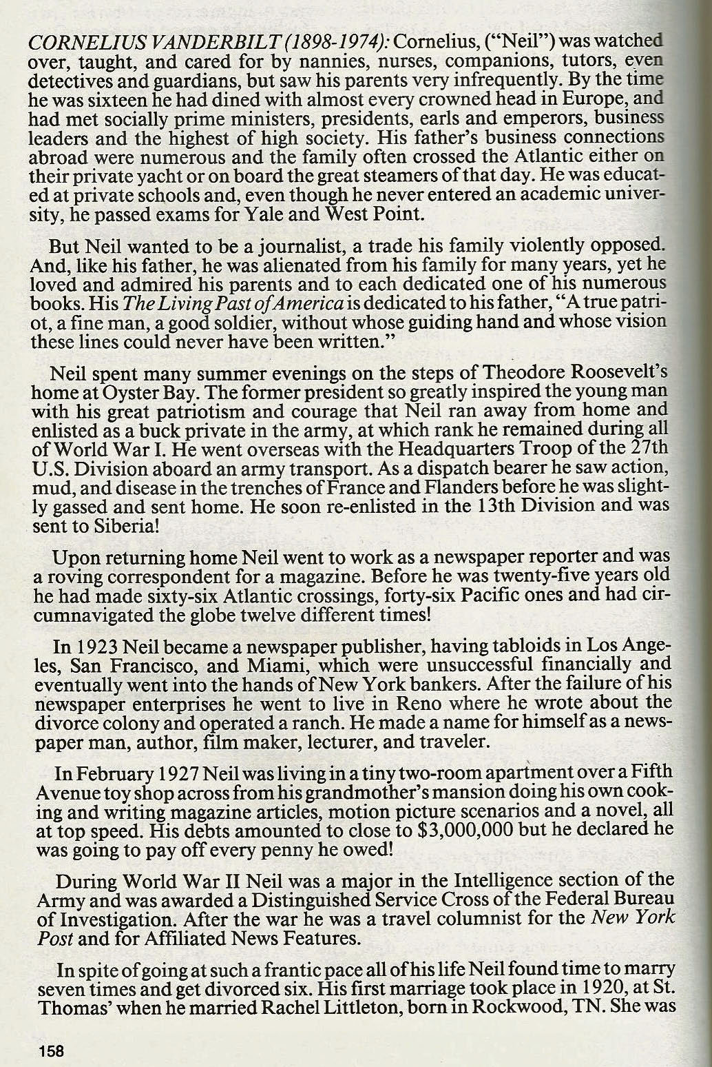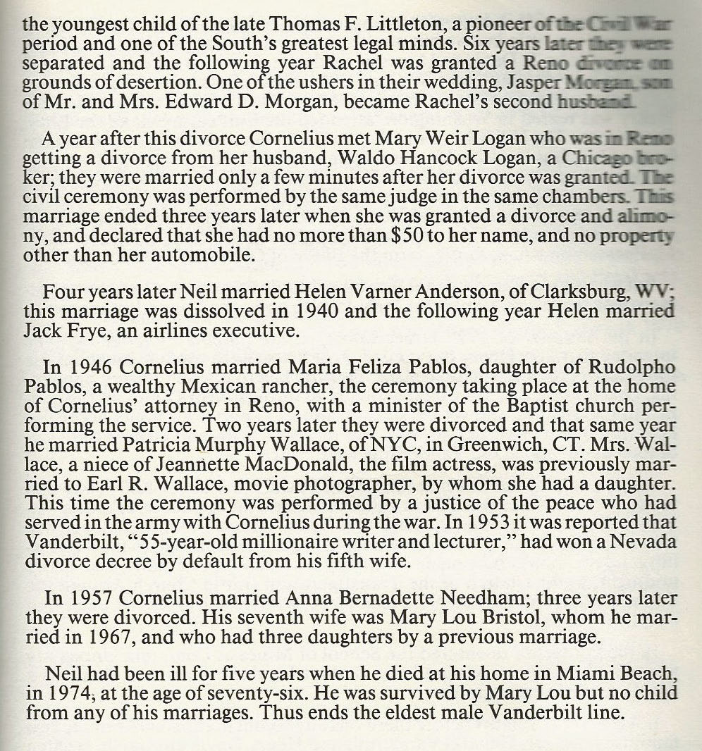 Cornelius (Neil) Vanderbilt IV (1898-1974), the great-great-grandson of Commodore Cornelius Vanderbilt. His Vanderbilt claim of fame was that he was married to seven women over a 55-year period.