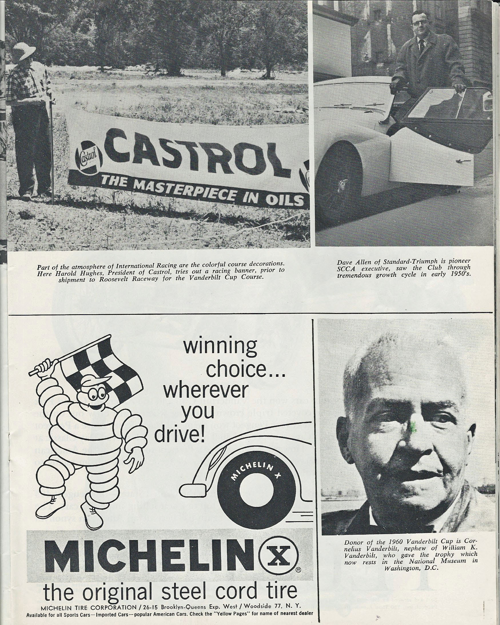 Cornelius Vanderbilt IV was the donor of the trophy for the 1960 Vanderbilt Cup Race. The race was officially called the Cornelius Vanderbilt Race.