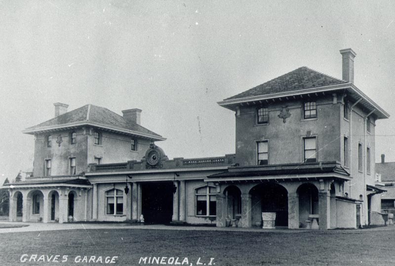 The garage of Robert Graves in Mineola. Robert Graves was the owner of the #1 Mercedes that raced in the 1905 Vanderbilt Cup Race and the two #3 Mercedes that raced in the 1906 and 1908 Vanderbilt Cup Races.