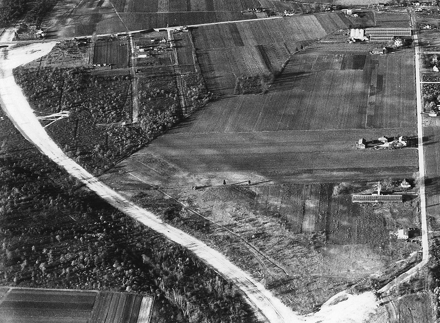 Looking North at Bethpage and the construction of the Bethpage State Parkway with the Bethpage State Park golf course in the background. Conklin Street can be seen along with what was the Central RR at that time.