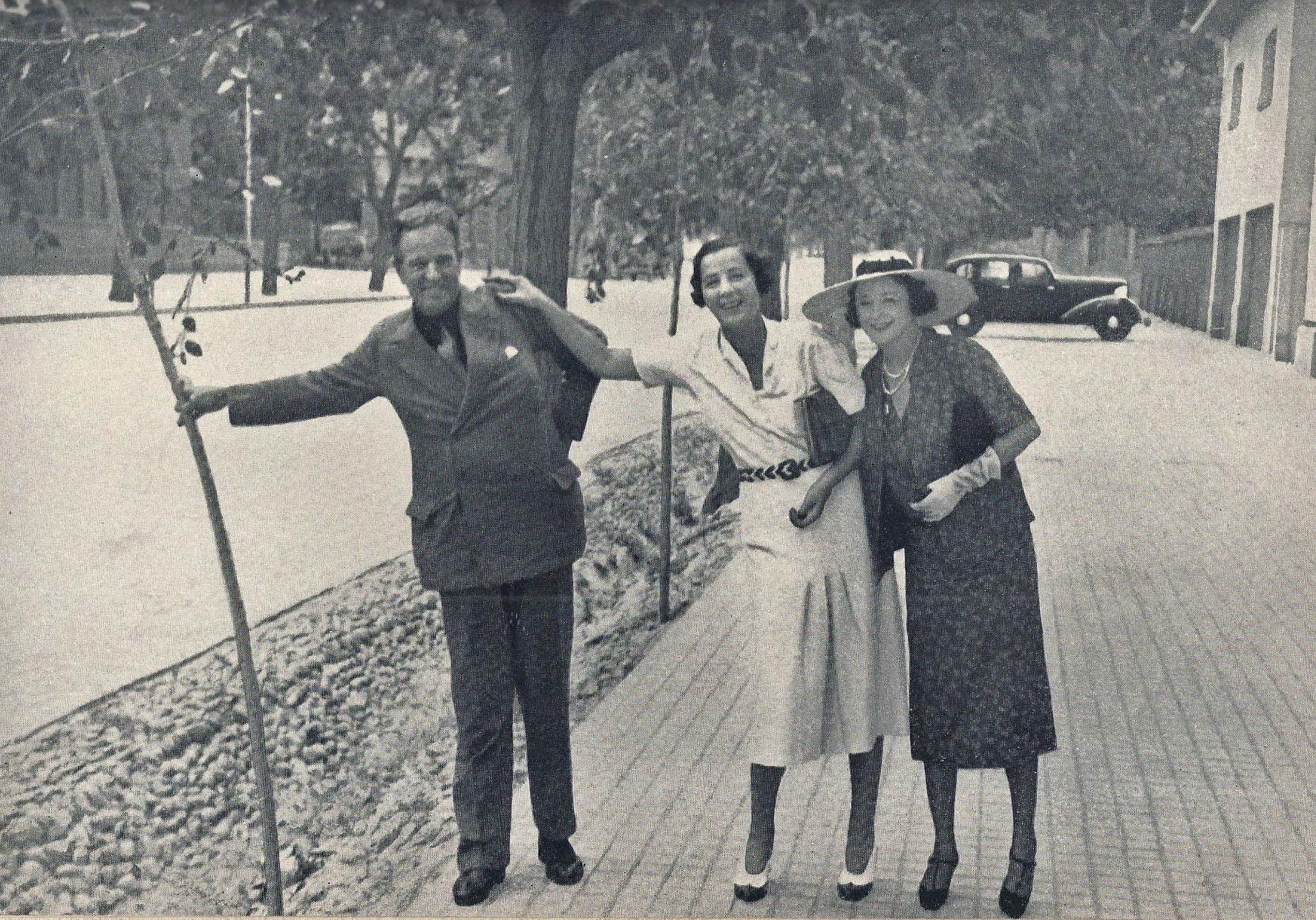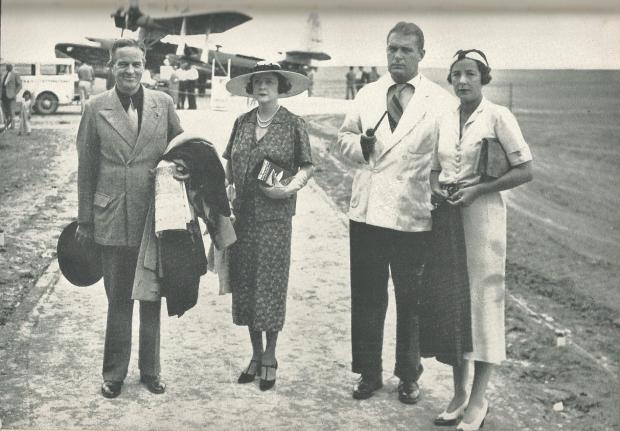 The photo was taken on February 2, 1937 in the airport in Mendoza, Argentina. The Vanderbilts and Huntingtons were traveling on a tour of South America from January 18 to February 11, 1937. The journey was documented in Vanderbilt's 1937 book Flying Lanes which was dedicated "To Bob and Edie -Our Flying Companions".