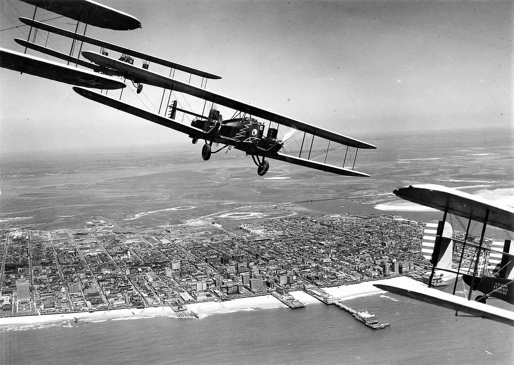 Curtiss B-2 Condor Bombers in formation over Atlantic City, New Jersey. B-2 #28-399 is on the right.