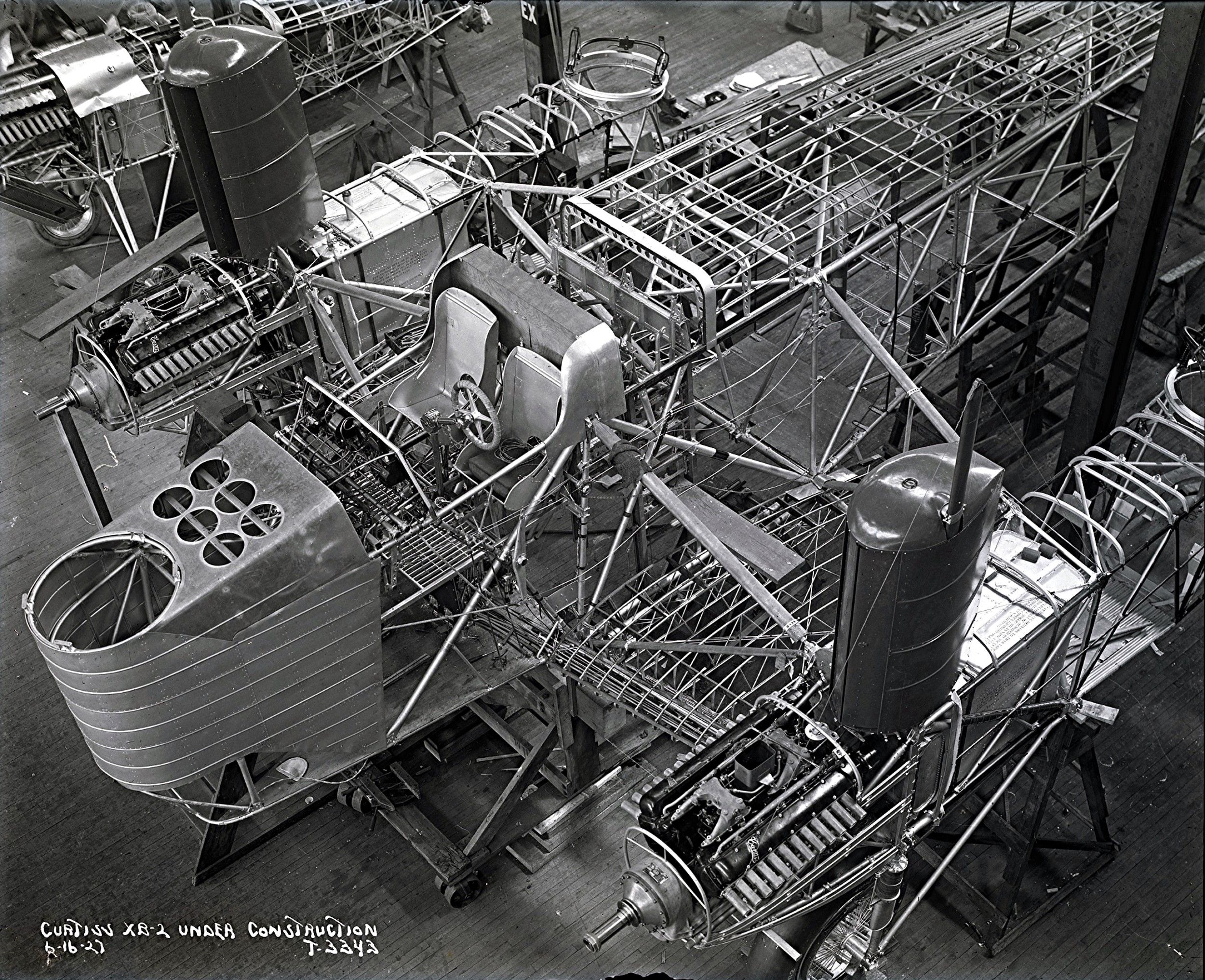 The experimental XB-2 being built in the Curtiss Plant in Garden City