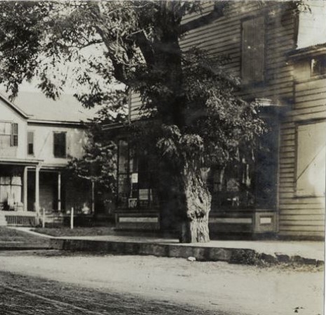 McQueen's Store is to the extreme right with another store owned by W.F. Johnson on the opposite corner