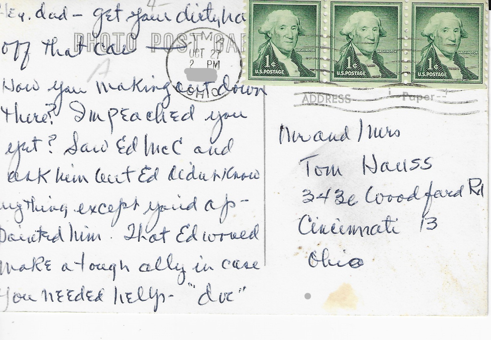 Since I have absolutely no idea of the real answers, it’s time for some guesses. It might be Tucker 1040. Looking at the back of the postcard (3 cent postage and no zip code) tells me the date should be about 1960-1961. If it is Tucker 1040, then it was in the January, 2019 Sotheby auction in Arizona.