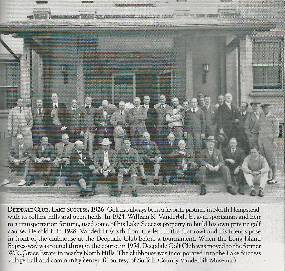 Members of the Deepdale Golf Club off Lakeville Road in Lake Success in 1926. In 1925, William K. Vanderbilt, Jr. engaged Charles Blair McDonald and his proteges Seth Raynor and Charles Banks to turn 200-acre of his Lake Success estate into a golf course.