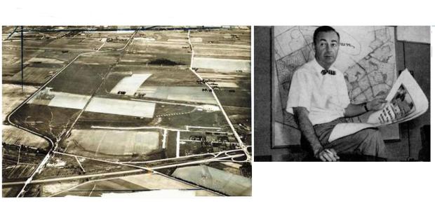 Such a great photo of the Hempstead plains just before the building of houses by Levitt & Sons. This picture was was taken May 27, 1947 and this is a view looking east. Newbridge rd and Wantagh parkway are in the foreground, and the Motor parkway is on the left side of the photo fading into the distance. Also, the island of trees are still visible top center. This photo is linked to the Vanderbilt Cup Races from April 19, 2012 posting. The businessman shown is o William Levitt who posed for this picture as he is holding an advertisement for Levittown, posted in the Saturday Evening Post, August 1954.