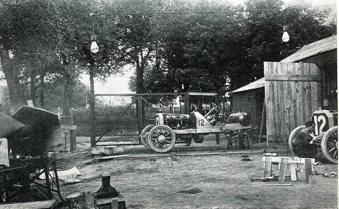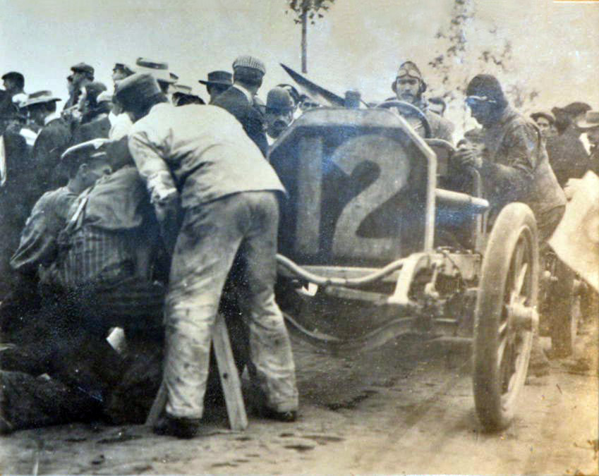 *Race/Date: American Elimination Trials 9/22/1906 to qualify 5 American entrants for the VCR 10/6/1906. The image captures the tire replacement at Diamond Tire Depot, Old Westbury during the first of 10 laps.