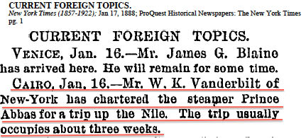 Mystery Foto #52 Solved: Willie K. and the Vanderbilt Family Cruising on the Nile River in 1888