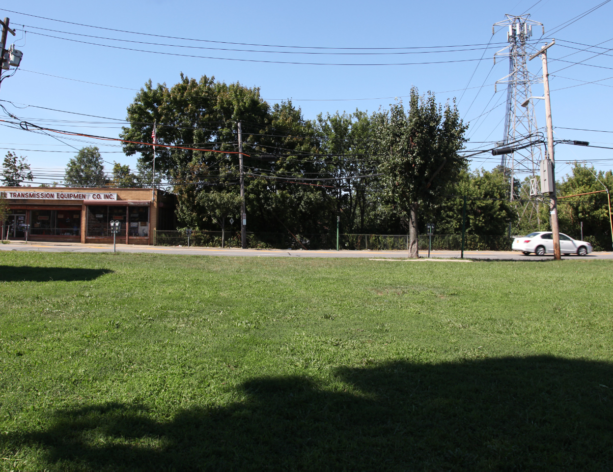 Note the building on the left and the tower on the right were also present in the 1960 photo. Jericho Turnpike was widened in the 1960s and the bridge was taken down. At that time, the parkway right-of-way was filled in and the site regraded to conform with the surrounding area.