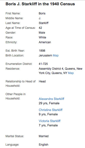 More info. on the photographer - Boris Starkliff (taken from the 1940 US Census) - born in Jerusalem in1898, lived with his wife (Alexandra, born in Yugoslavia) and two daughters (Christina and Victoria) at 242-11 Northern Blvd, Queens. Occupation listed as photographer.