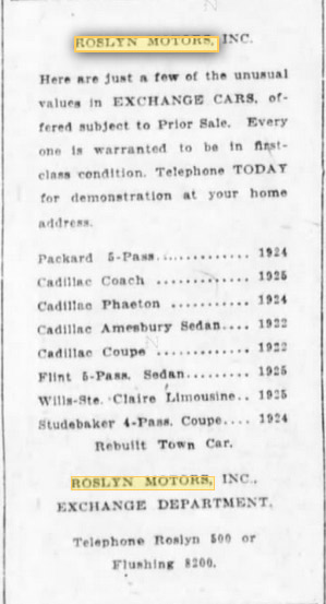 I notice in the vintage ad above that there was also a Roslyn Motors facility in Flushing, Queens. Does anyone have any information on where it was?. Was it a showroom? How long was it in operation?