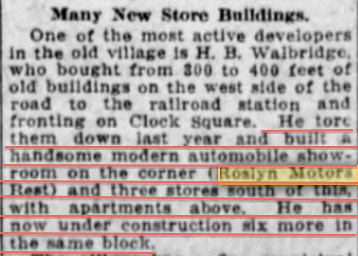 It is a treasure that the building that housed Roslyn Motors still exists, and still appears essentially the same as it did when motor cars graced the showroom floors within.