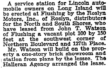 1307 Old Northern Blvd, Roslyn NY. Somewhat southwest from Lumber Rd, nearby Howard’s place, 55 lumber Rd. The Lincoln in the showroom (on the right) appears to be about 1923-24 period.