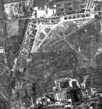 I predict you’ll be listing a lot of names who get this one right, as nearly everyone who’s a fan of your site would recognize the Motor Parkway running east/west between the remnants of Roosevelt Field (above) and still-active Marshall Air Force Field (below). Circa late 1940s. Where the parkway turns north is of course Clinton Street, and Meadow Brook Polo Field is the prominent dark rectangle that abuts the parkway further to the east.