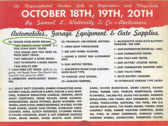 A total of 23 Tuckers were sold at the auction. Sometime in 1951, Tucker 1044 was painted bright red and sold to Allen Rocco.