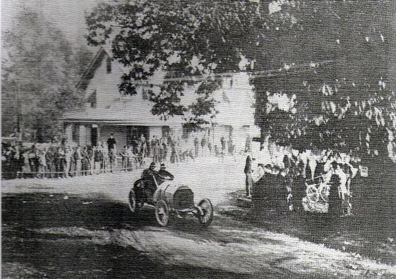 Italian Felice Nazzaro taking the Bulls Head Turn in his #8 Fiat during the 1905 race. The crowd on the right was standing at the future location of Ben's Deli in Greenvale!