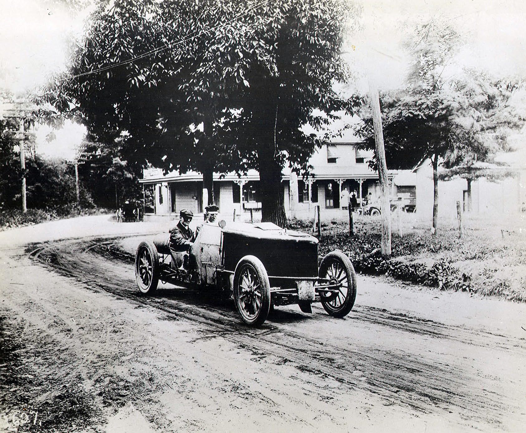 The great Italian driver Vincenzo Lancia practicing in his Fiat on Glen Cove Road.