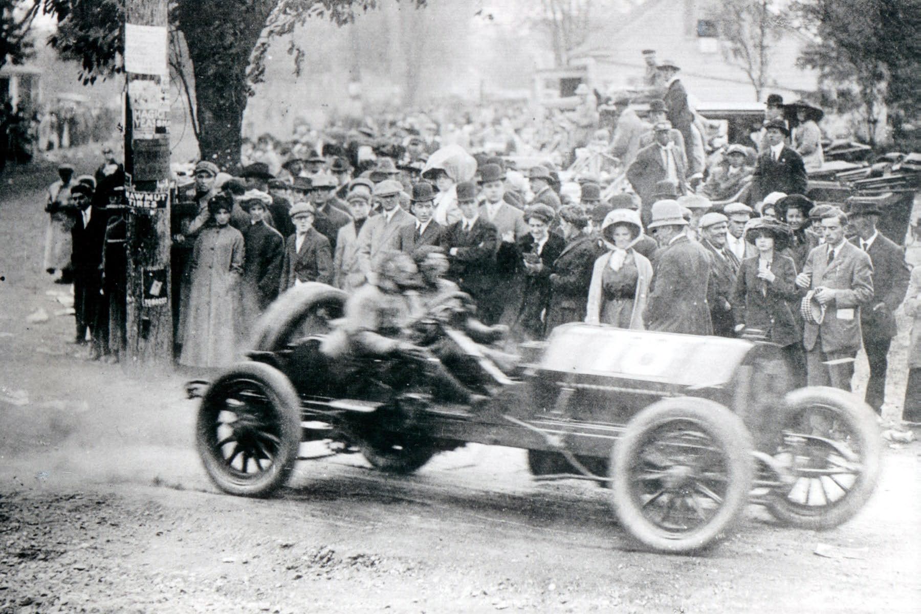 Fifty miles from the end, with Dawson's enforced four minute stop, the same low-hung Alco 60 swung into the lead. Dawson's slashing assault to catch Grant failed by 25 seconds.