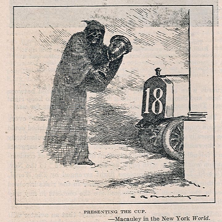 It is significant that Grant's first inquiry after winning was, "What was my time?". Grant's time was 65.1 mph average; truly remarkable in view of the circuit jammed with competitors and the idiotic populace.