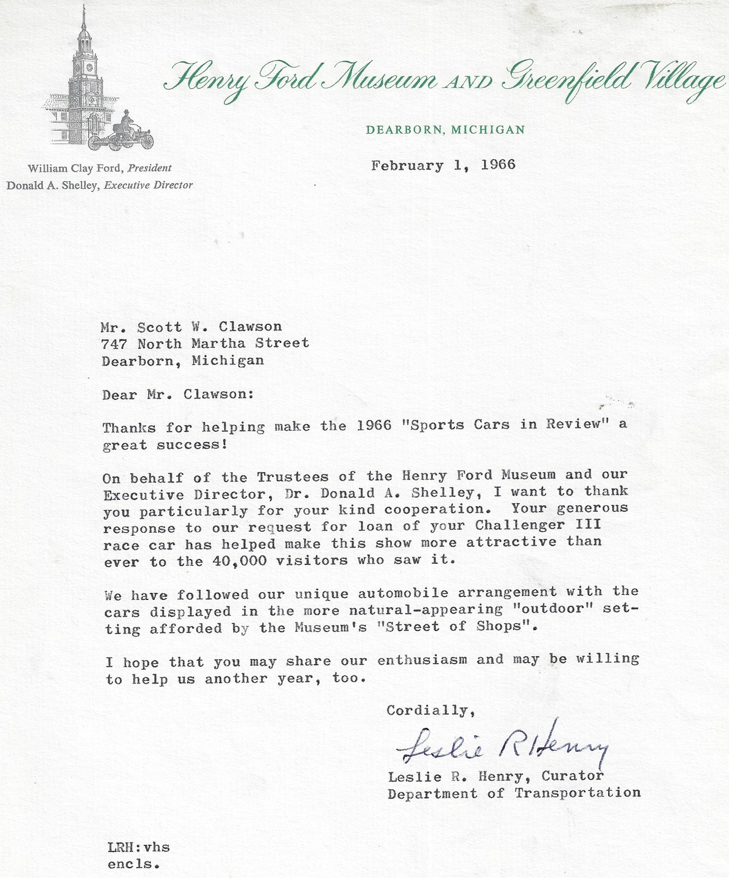 Henry Ford Museum 1966 "Sports Cars in Review" Exhibit, January 14, 1966- Febrauary 6, 1966