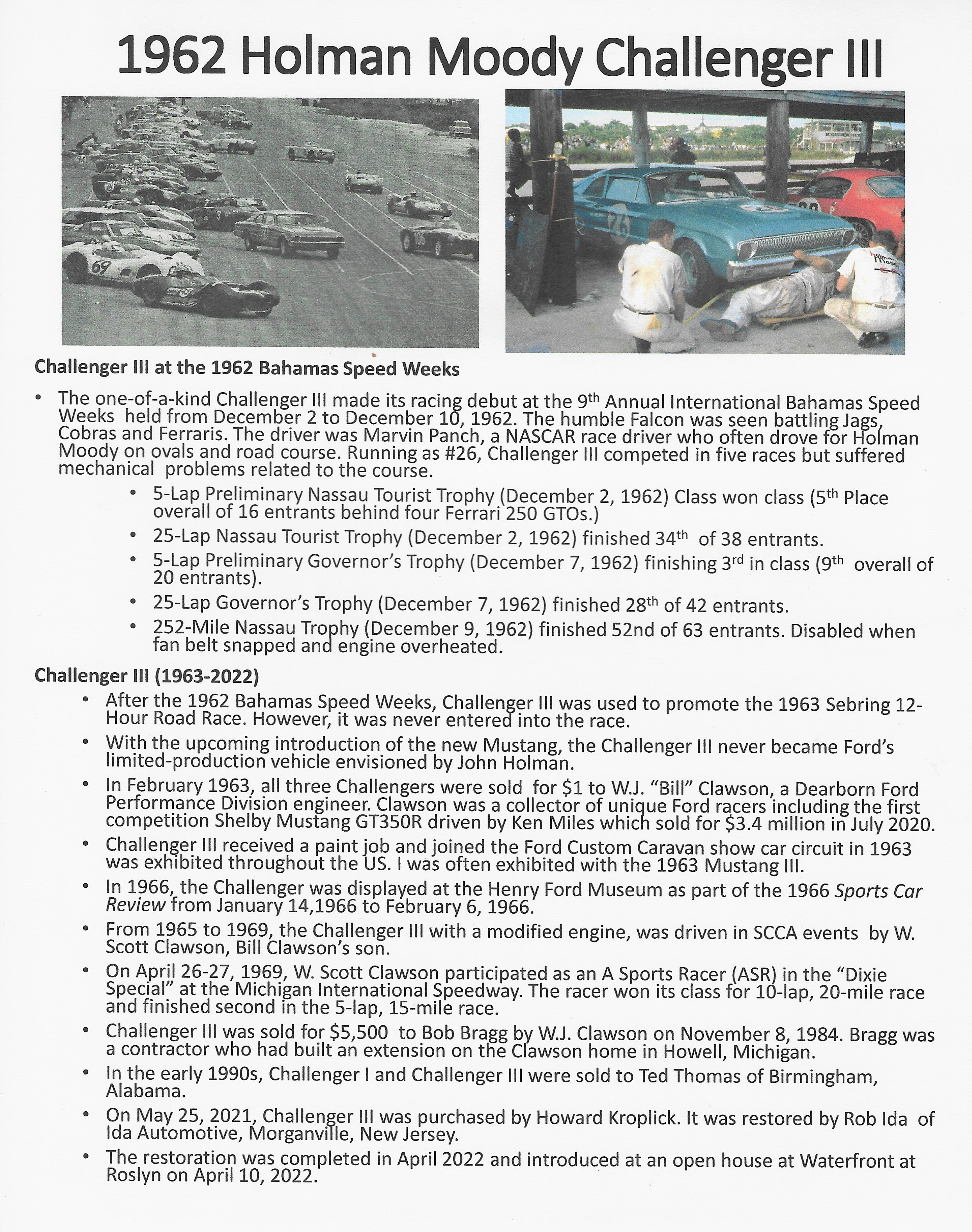 To celebrate the arrival of the restored Challenger III this week in Roslyn, below is a profile of the new addition to my collection of historic automobiles.