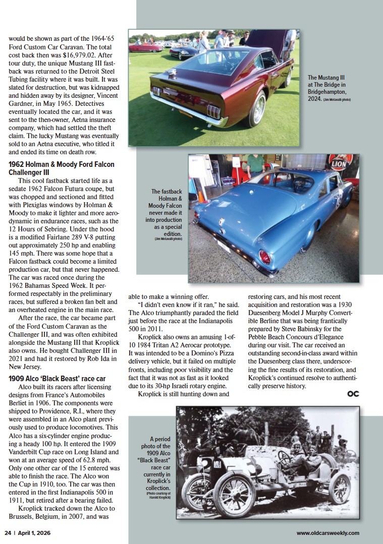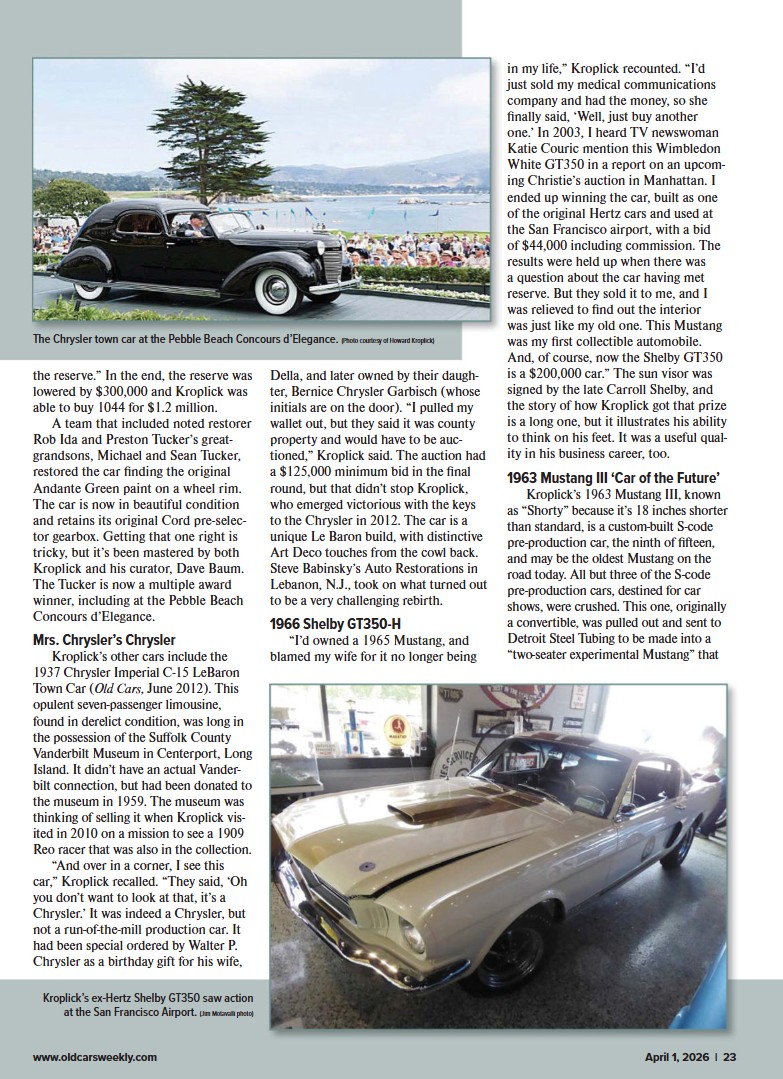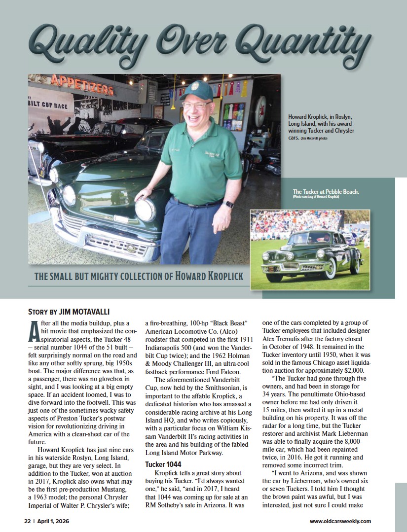 The upcoming April 1, 2026 issue of Old Cars is featuring an article on the Kroplick Collection by Jim Motovalli.