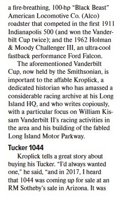 Old Cars Weekly Article: “Quality Over Quantity -The Small But Mighty Collection of Howard Kroplick”