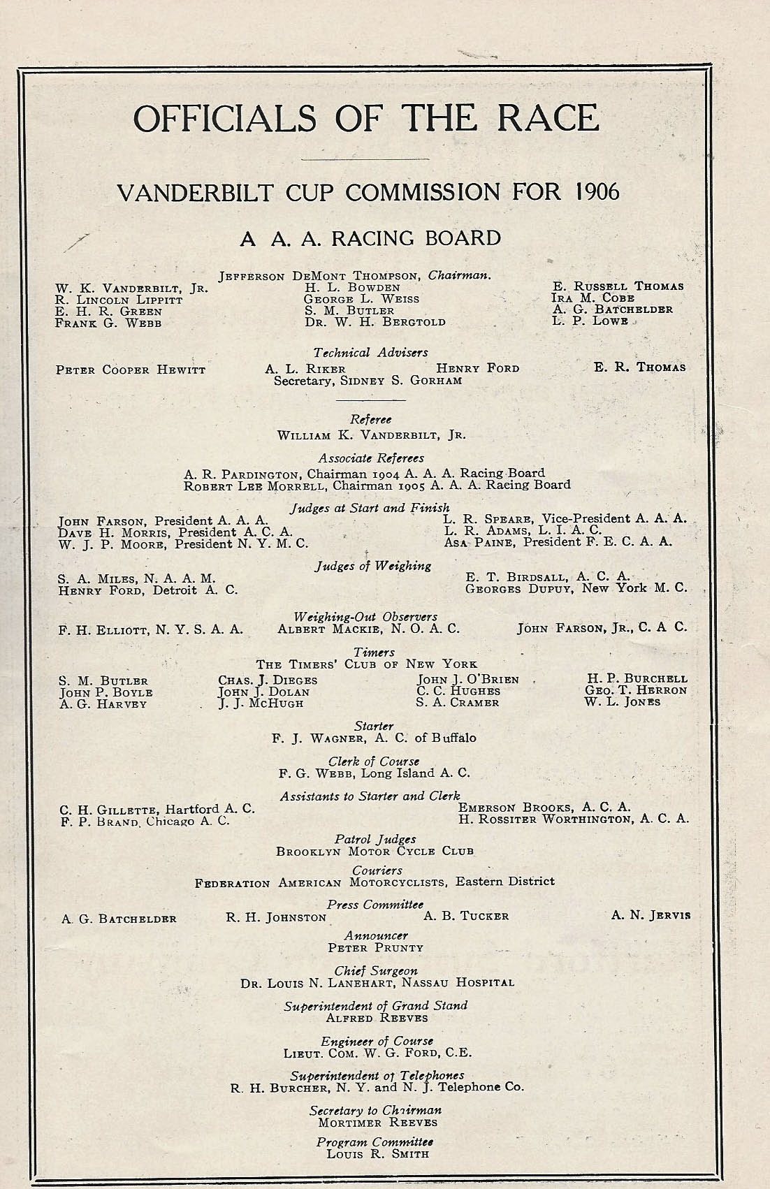 Henry Ford in the 1906 Vanderbilt Cup race program