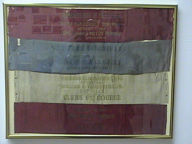 Since only 50-100 brassards were made for each race, they are highly collectible. These four armbands were owned by tocated in the Garden City Toll Lodge building when occupied by the Garden City Chamber of Commerce. They were donated by Crawford Robertson, son of George Robertson, the winner of the 1908 Vanderbilt Cup Race.