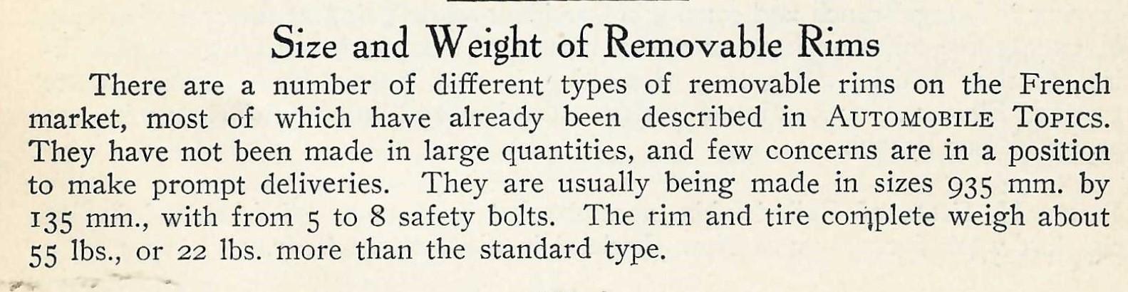 Warnings to American manufacturers to start building removable rims or they will be "handicapped by the foreign car."