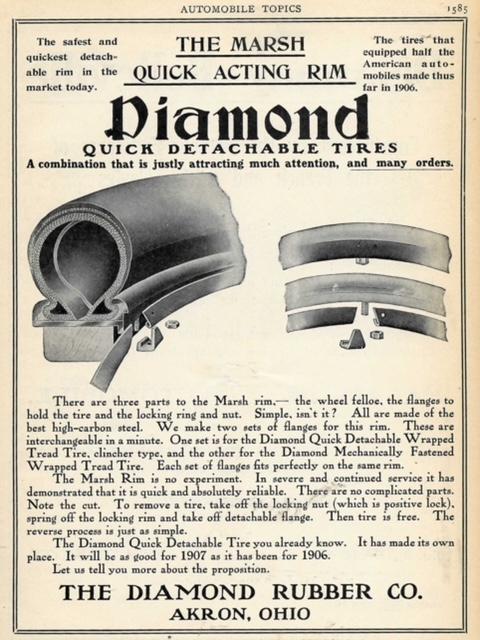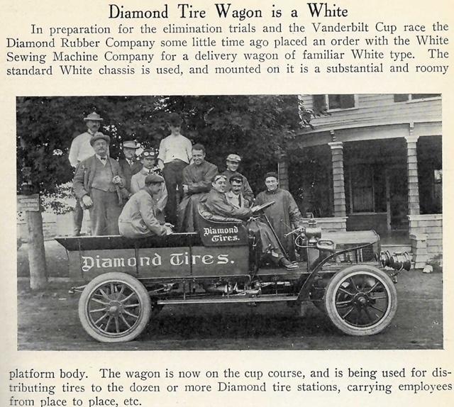 U.S. manufacturer Diamond Rubber got into the quick change game with their own design. The even had a White manufactured steam delivery wagon to bring employees and tires to tire stations around the Vanderbilt Cup race course.