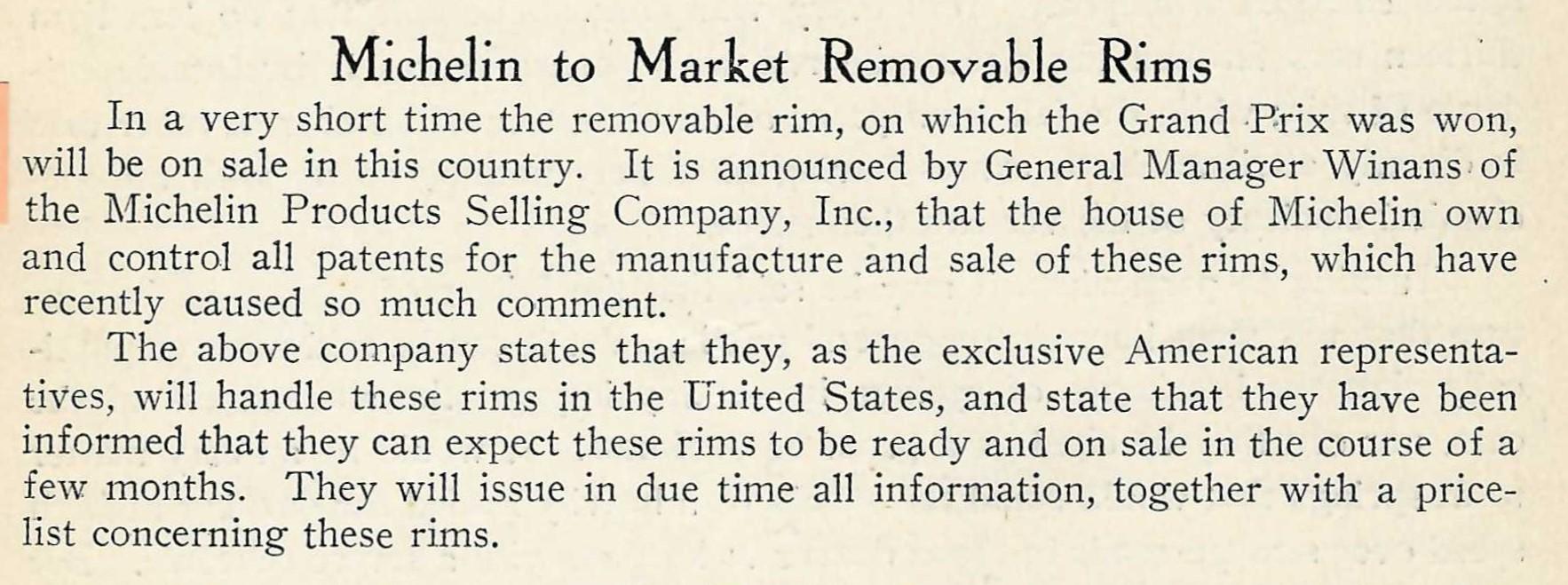Michelin started offering their rims in the U.S. in 1906.