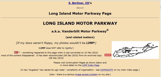 The website provides current images and descriptions of the Long Island Motor Parkway from its Western Terminus in Fresh Meadows, Queens to the Eastern Terminus in Lake Ronkonkoma. Sam Berliner has been walking and documenting the Long Island Motor Parkway for years and has been instrumental in efforts to preserve it.