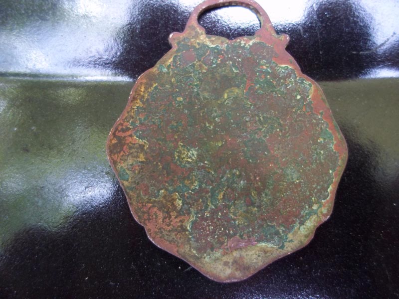 I think my medallion was originally shaped like yours but, for some unknown reason, was trimmed down. You can see the cut marks around the edges in my scan of the medallion. Thanks for photographing yours. I hope we can solve this mystery.