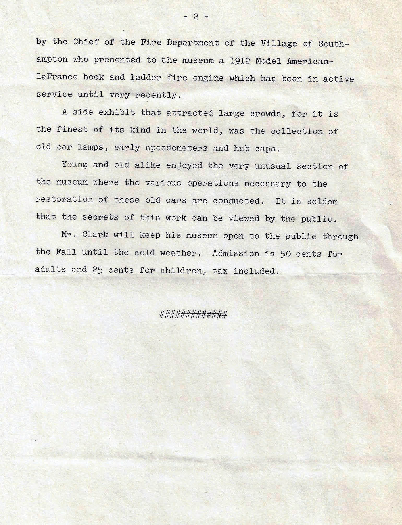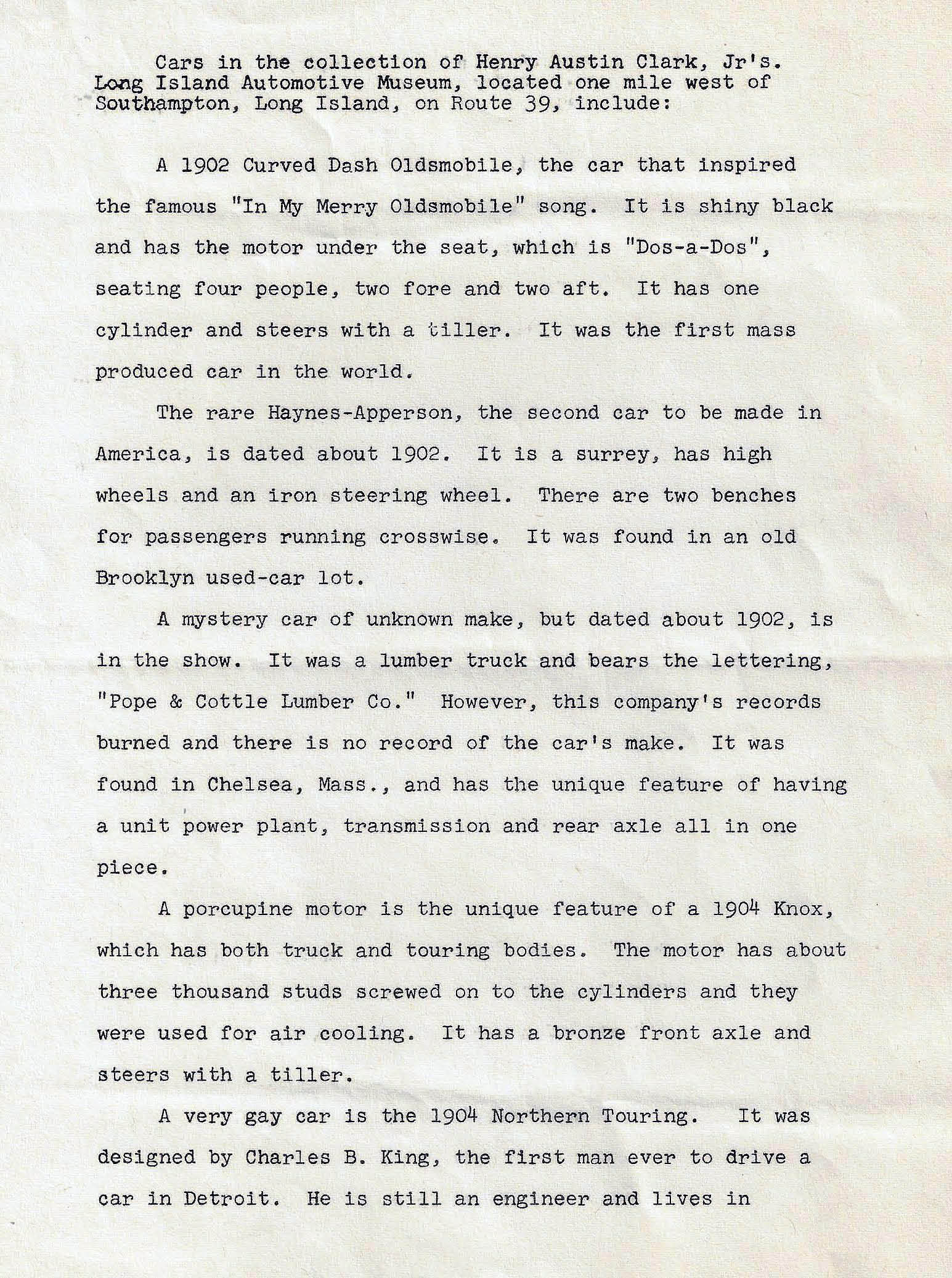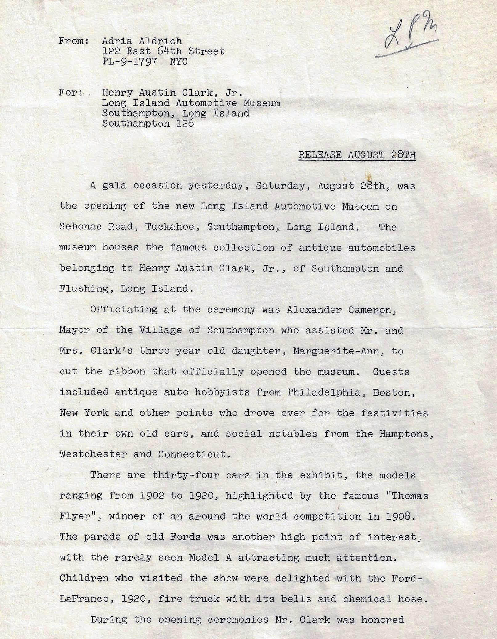 The 1948 Press Release Announcing “The Opening of the New Long Island Automotive Museum”