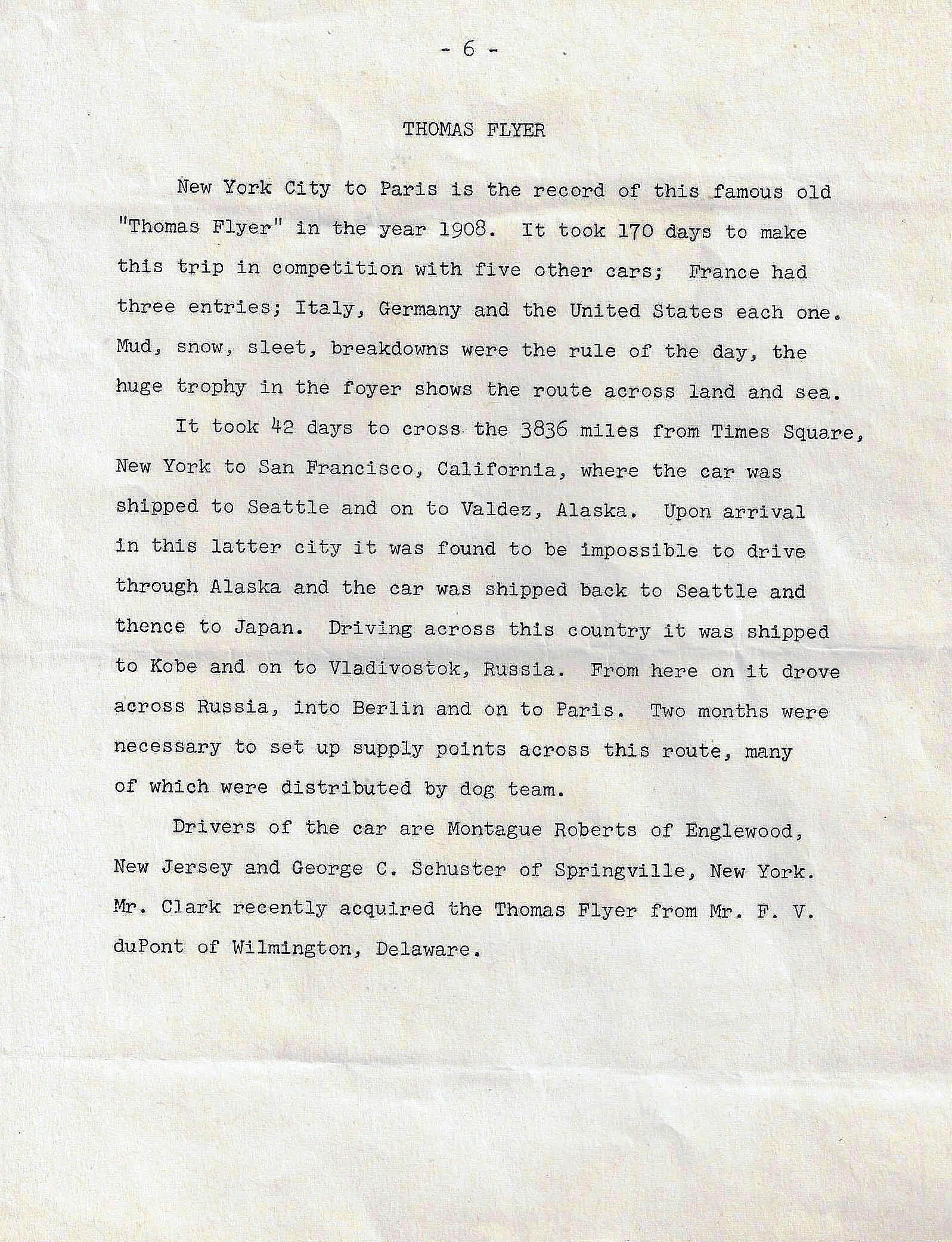 Gary Hammond has forwarded the official press release announcing the opening of the Henry Austin Clark, Jr.'s Long Island Automotive Museum in Southampton. The release included a description of Clark's car collection featuring the 1908 Thomas Flyer.
