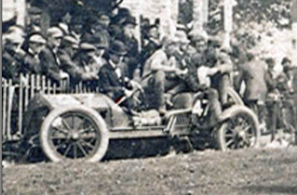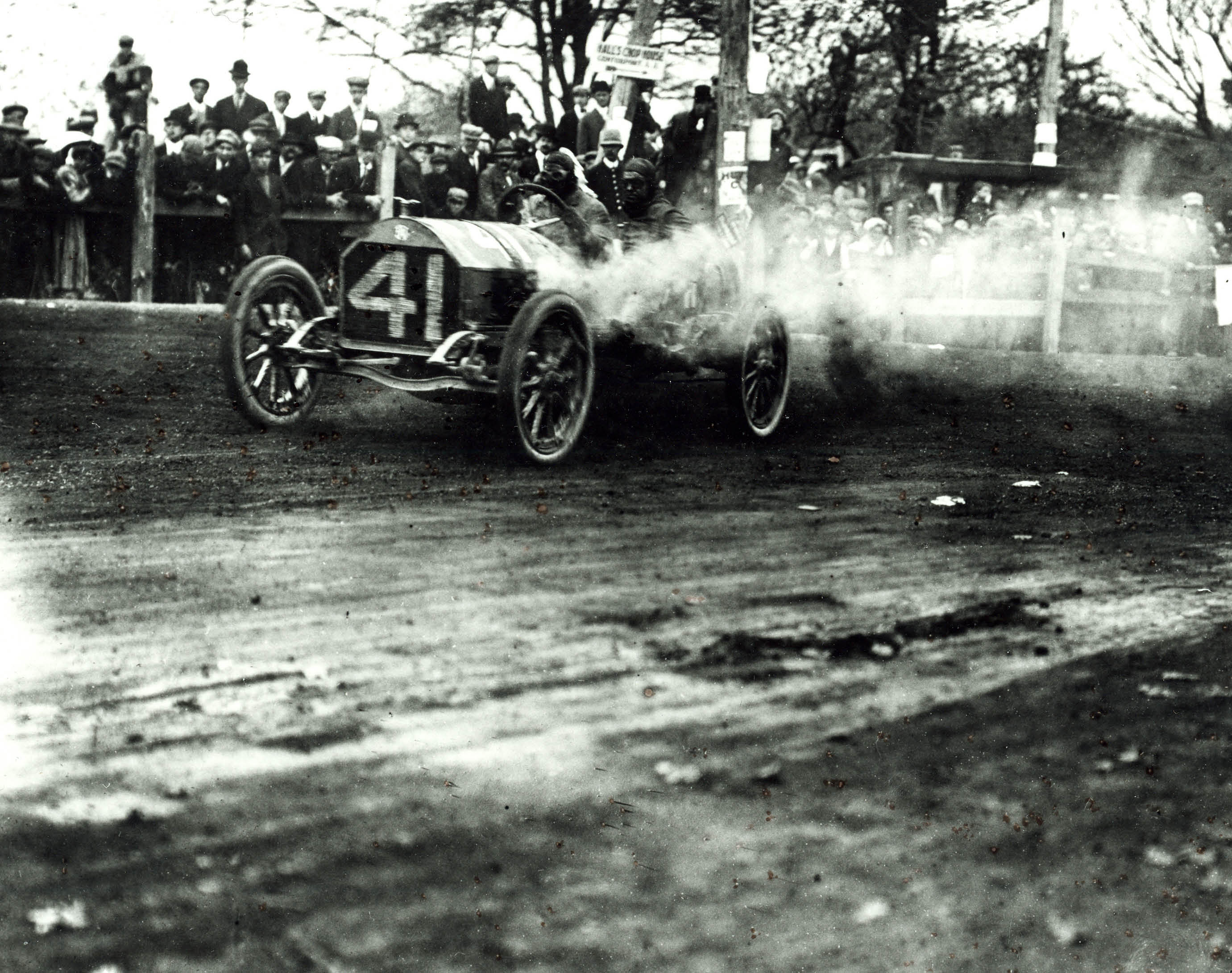 The late start of the Wheatley Hills Sweepstakes, for cars of 231 to 300 cubic inches, was very nearly a factor in the Vanderbilt Cup Race. As Wagner released one of the small stock cars it kicked up enough dust and smoke to cause Eddie Hearne in one of the Vanderbilt Cup Benz racers to swerve abruptly and hang his left wheels off the concrete and into the dirt. For an instant it appeared to observers that the big Benz was going to lunge into the crowd behind the wire fencing along the Motor Parkway, but Hearne kept his cool and guided his speeding racer back onto the course, and, eventually, to an eighth-place finish.