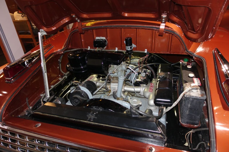 Because the two torque converters on the Tuckermatic made the engine/transmission unit longer, the fuel tank in the Tucker ’48 had to be moved from behind the rear seat to in front of the dashboard for all Tuckers from car #1026 forward, even though only two of them actually had the Tuckermatic installed. This had the added advantage of improving weight distribution on the car.