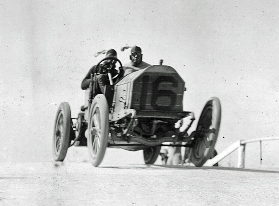 #1 Mercedes (Germany) driven by Camille Jenatzy, 120 HP. Finished 15th. Cracked cylinder during Lap 4.